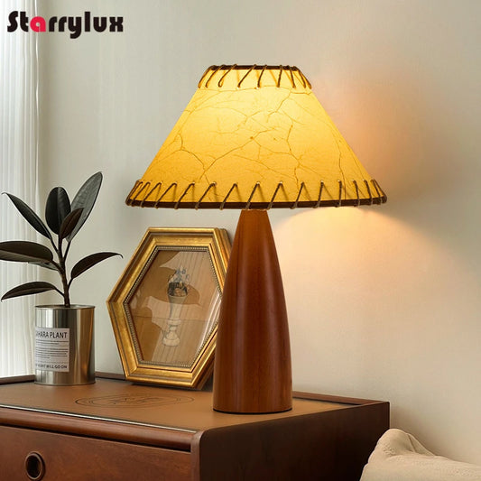 Wooden LED Bedside Lamp – Wabi-Sabi Vintage, 3-Color Dimmable