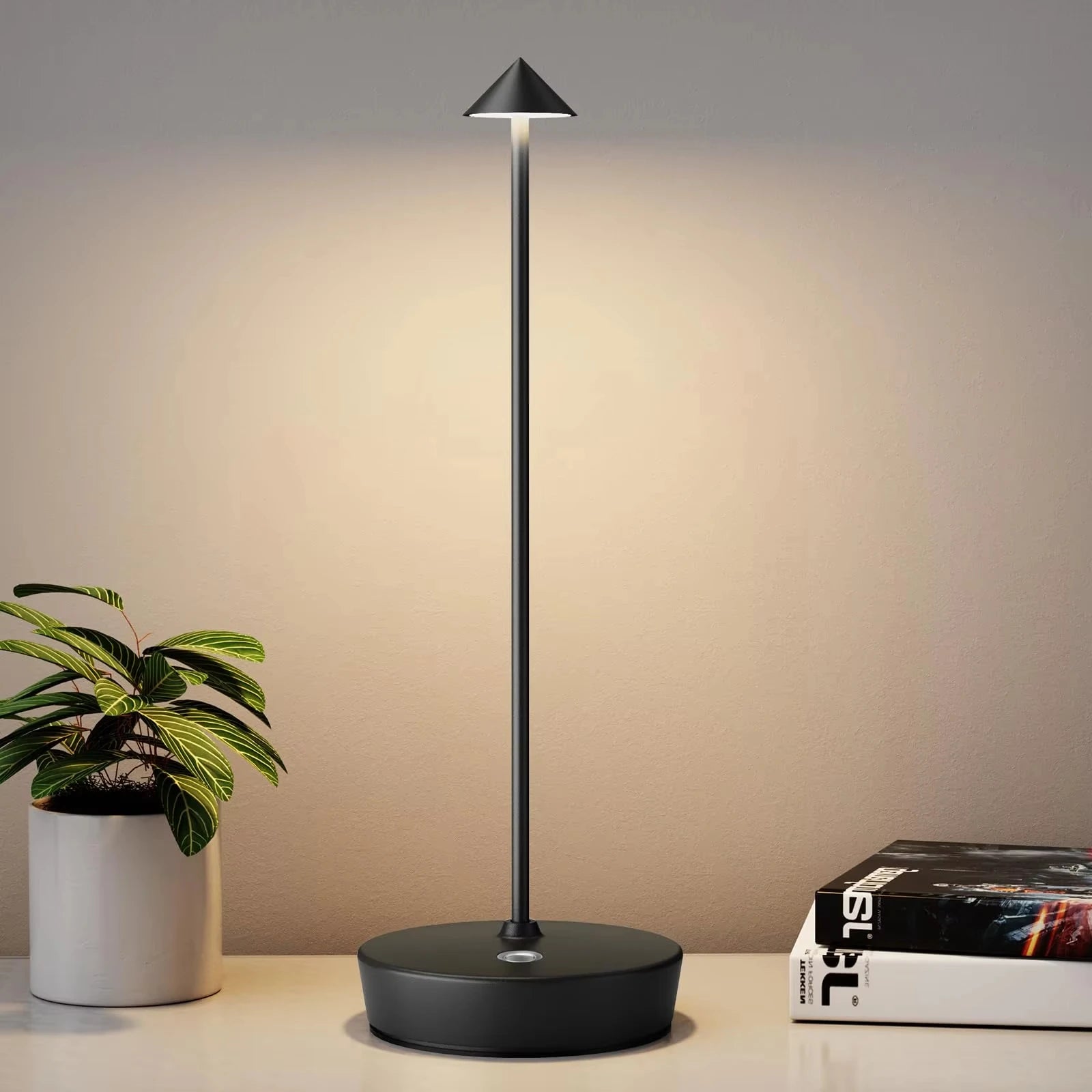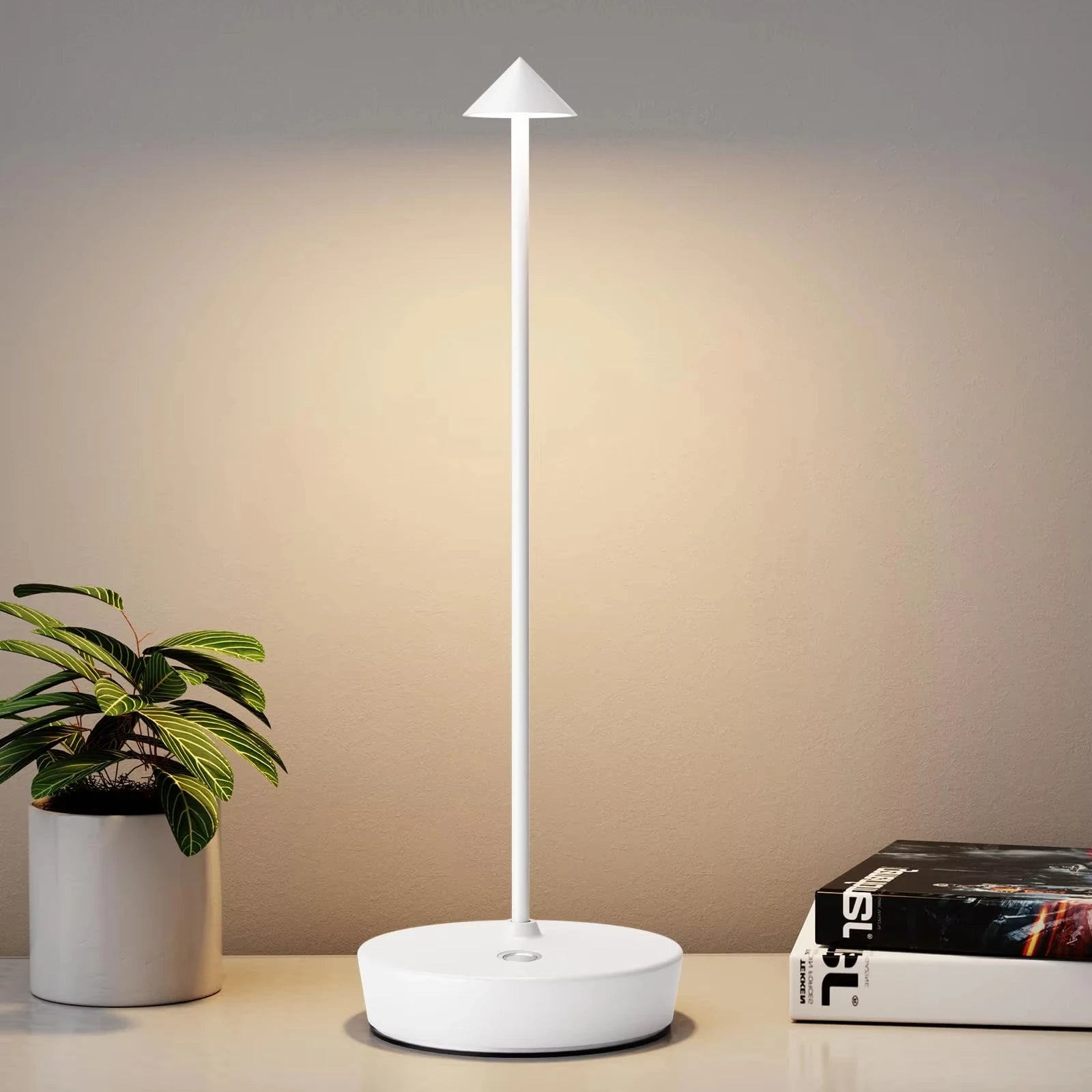 【Modern Minimalist Design】 The indoor cordless desk lamp with integrated LED design, is made from high-quality metal aluminum. 360 degrees illumination, touch control designs, make the LED table light a unique and elegant appearance.